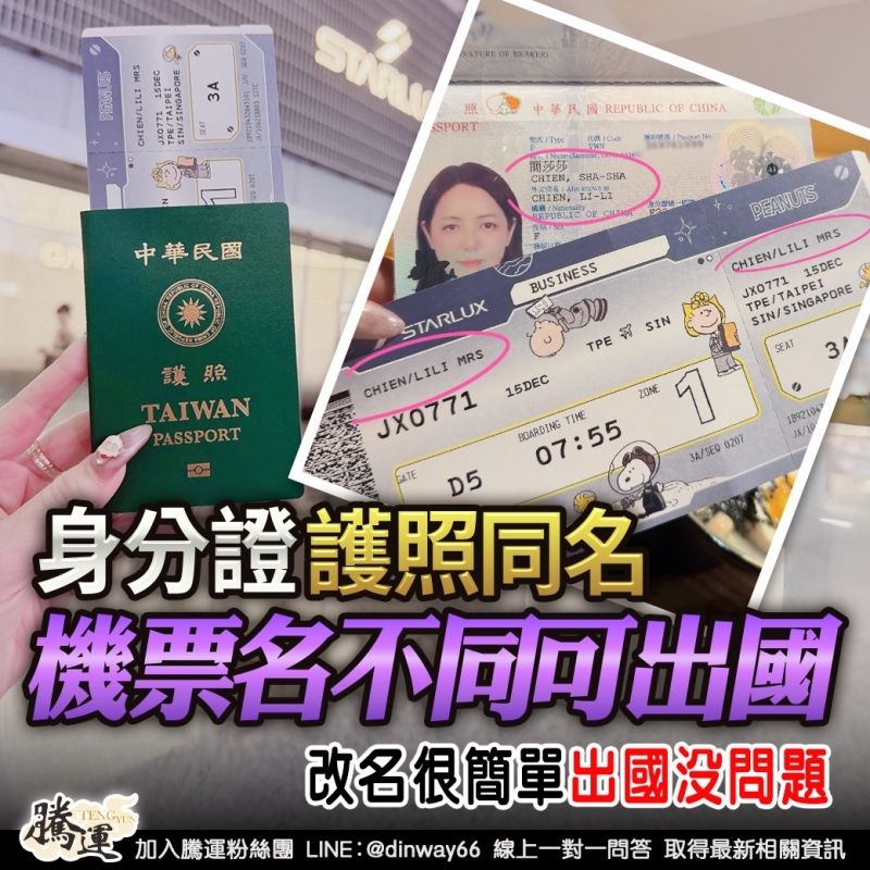 身分證名跟護照名一樣,但機票名不同也是可以出國的---張定瑋老師